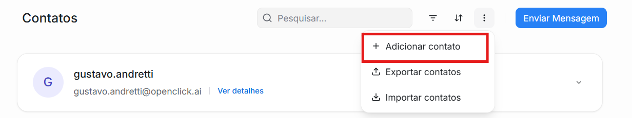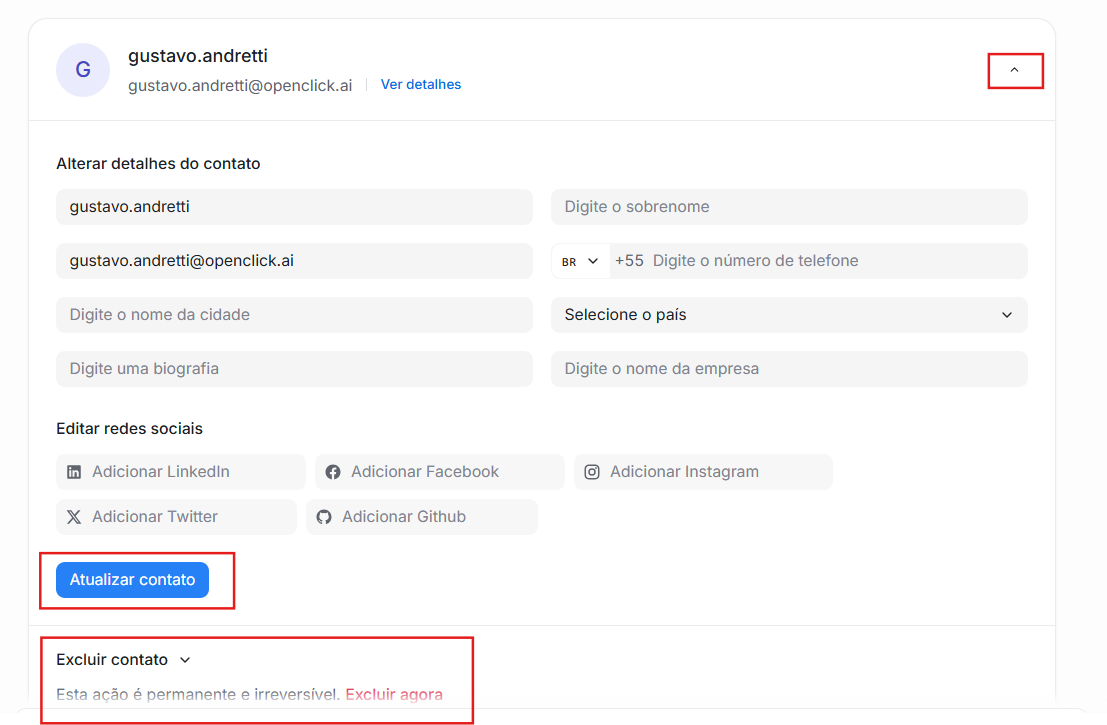 Você também pode realizar a alteração e exclusão clicando em "Ver detalhes" no contato, como na imagem abaixo: