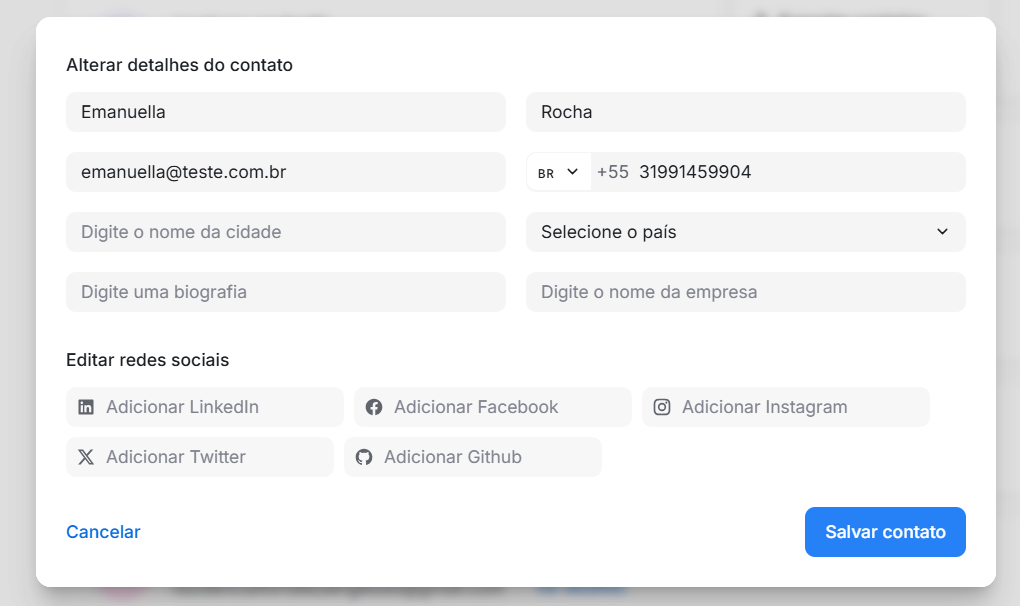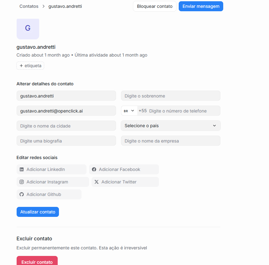 Inclua as novas informações e clique no botão **"Atualizar contato". **