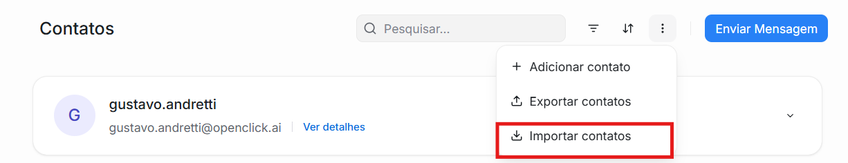 Passo 1. Na tela Contatos, clique no botão “ Importar ” no canto superior direito.
