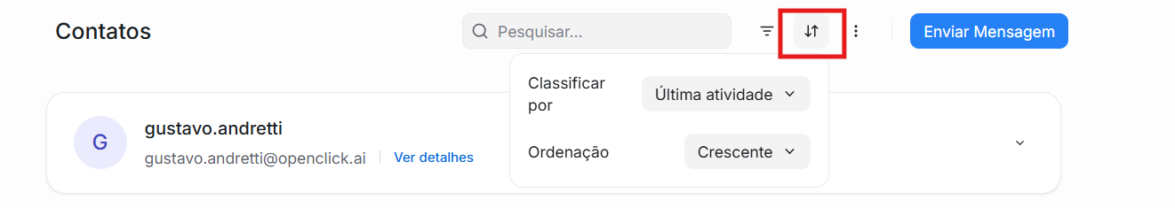 Classificar por criado em: classifica a lista por ordem de criação do contato.