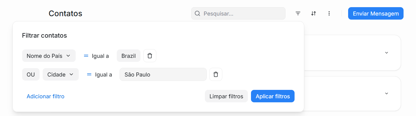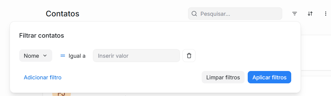 Você pode aplicar filtros avançados aos seus contatos. Os seguintes filtros estão disponíveis: