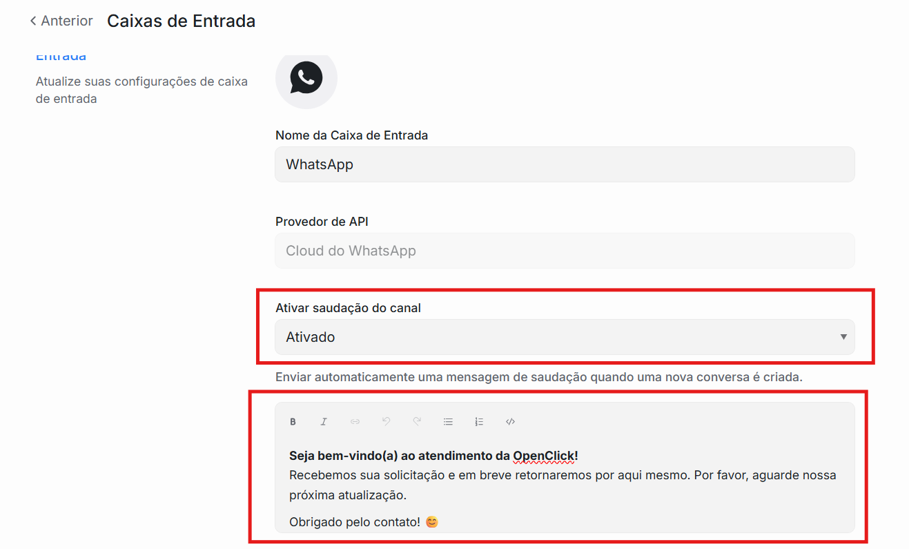 Sempre que um cliente inserir seu ID de e-mail na mensagem de saudação do canal, ele será salvo automaticamente como um contato.