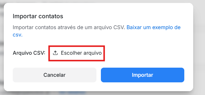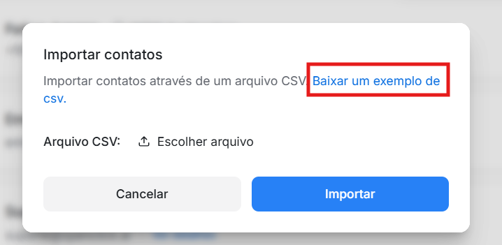 Adicione os contatos seguindo o modelo. Depois clique em "Escolher arquivo" para realizar o upload da planilha. Em seguida clique em "Importar".