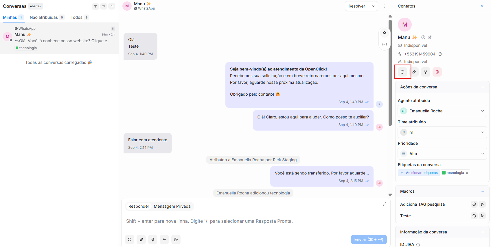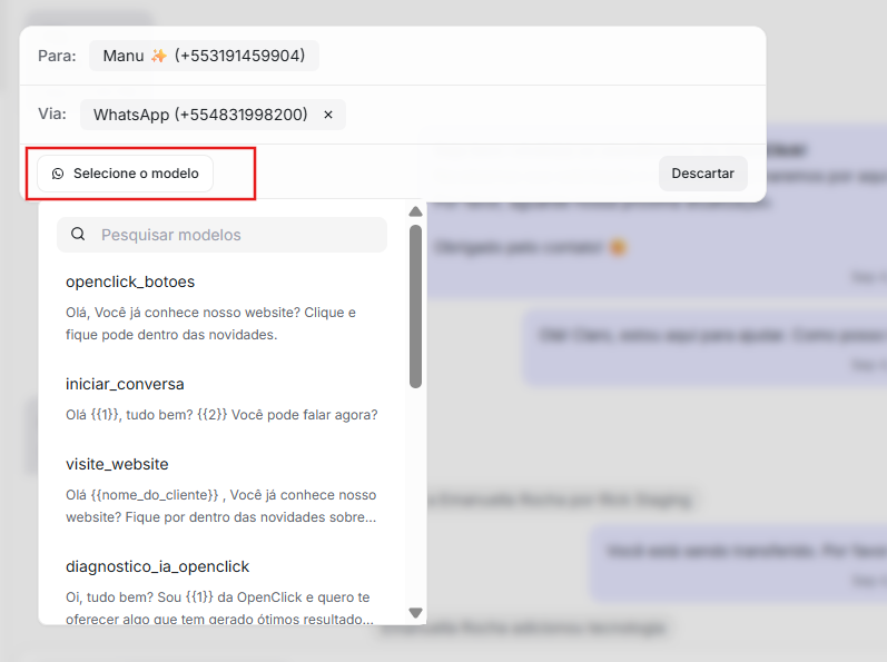 Conversas individuais - Envie modelos para clientes específicos durante conversas