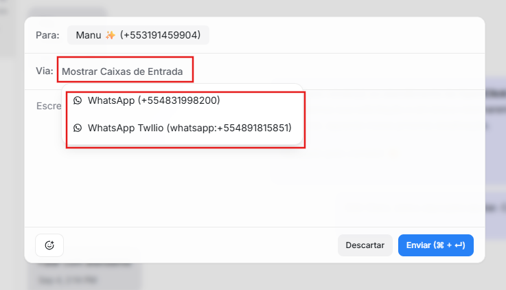 Abra qualquer conversa com um contato do WhatsApp, clique no ícone de compositor de mensagens e selecione "Mostrar caixas de entrada" no menu suspenso.