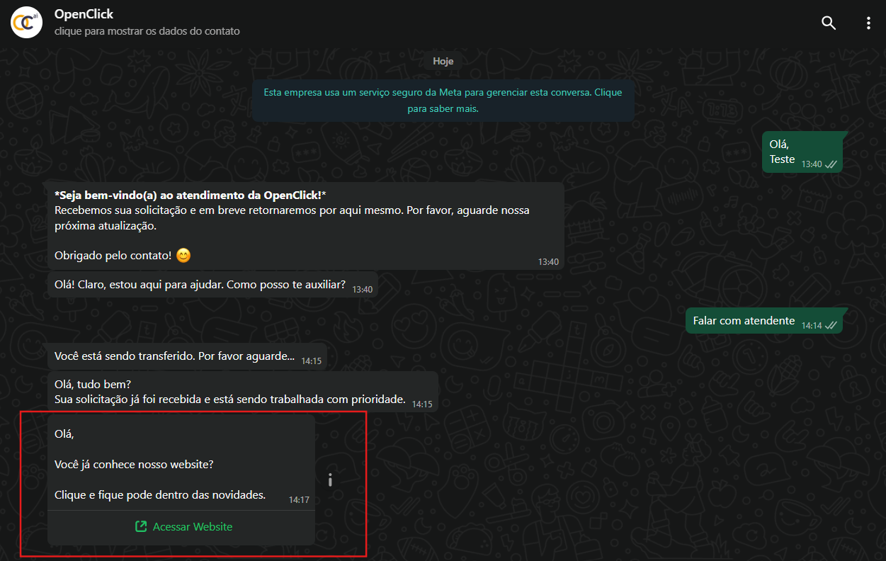 Pronto! Sua mensagem via template chegará na conversa de WhatsApp do seu cliente.