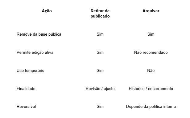 Ação de retirar um conteúdo do uso ativo, mantendo-o armazenado.