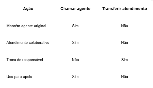 Diferença entre chamar um agente e transferir o atendimento