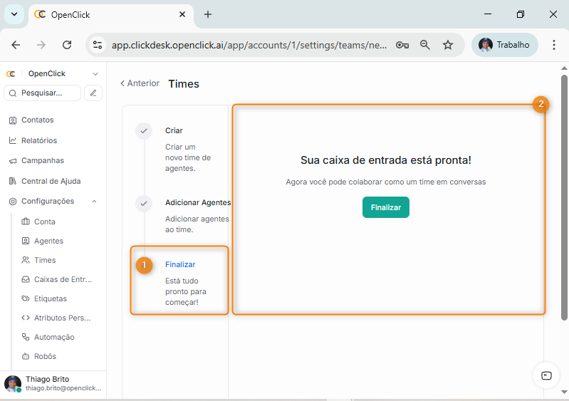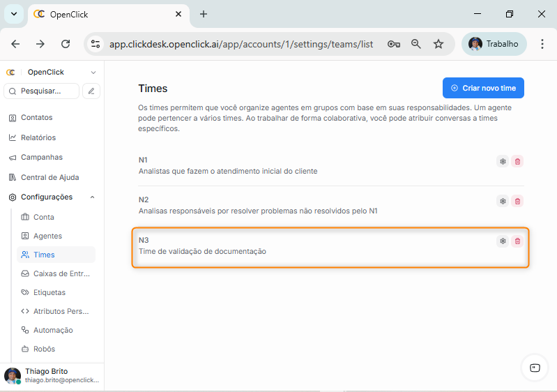 Criando um time no Clickdesk