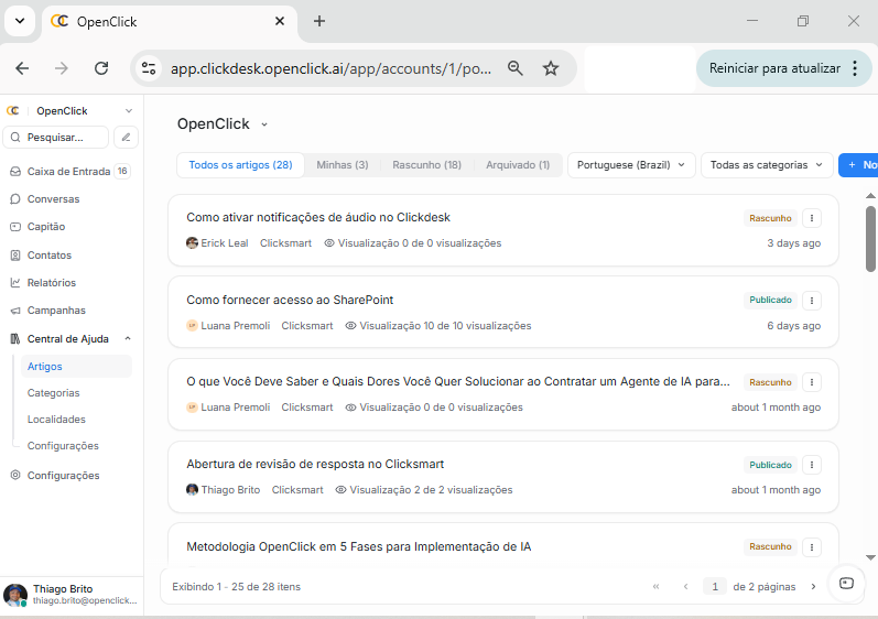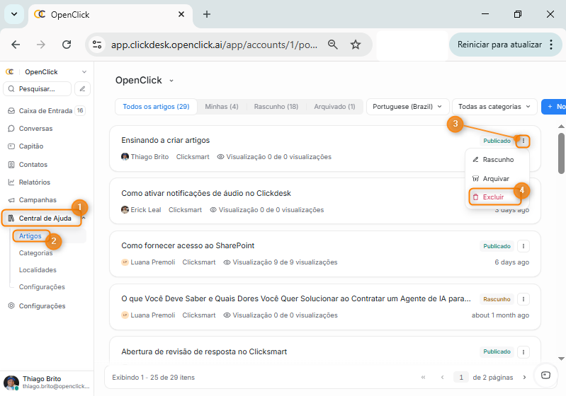 Este artigo explica como excluir artigos da base de conhecimento do Clickdesk.