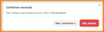 O filtro será excluído, e não aparecerá mais como um submenu dentro do menu Conversas
