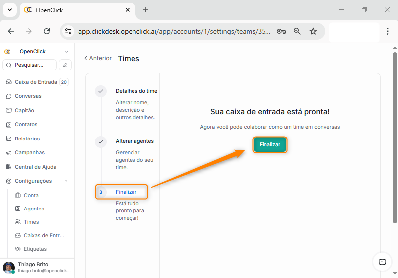 Acessando o um time no Clickdesk