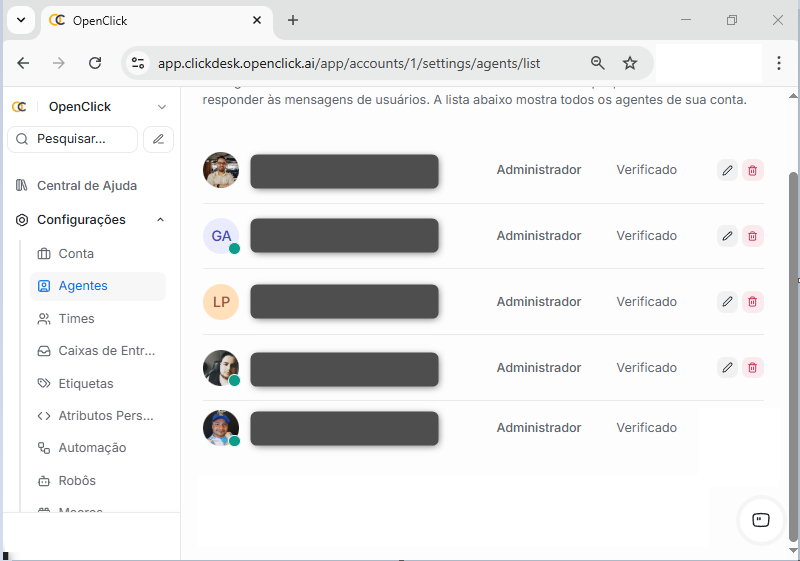 Um agente é o usuário responsável por atender conversas, responder clientes e interagir nos canais configurados no Clickdesk (como WhatsApp, e-mail, etc). Dependendo da permissão atribuída.