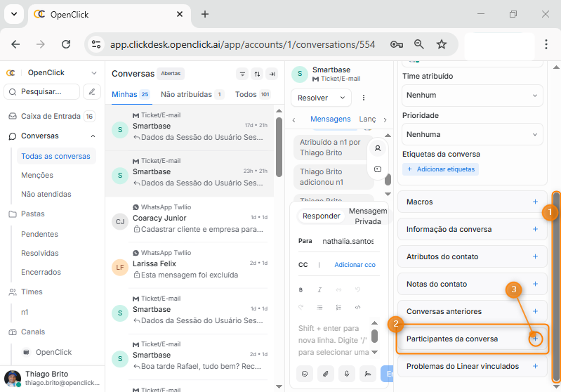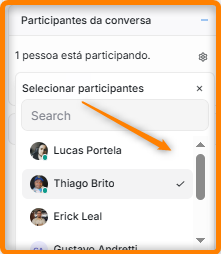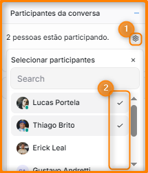 Com auxílio da barra de rolagem (Item 1) encontre a agrupamento Participantes da conversa (Item 2) e clique no símbolo de + (Item 3)