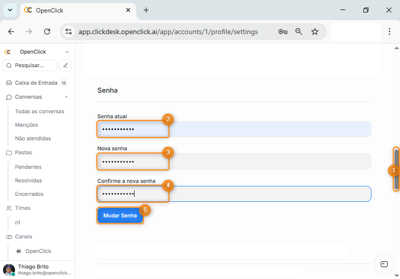 Este artigo explica como trocar a senha do próprio usuário no painel do Clickdesk. A troca de senha é uma prática importante de segurança e pode ser realizada sempre que o usuário desejar atualizar suas credenciais de acesso.